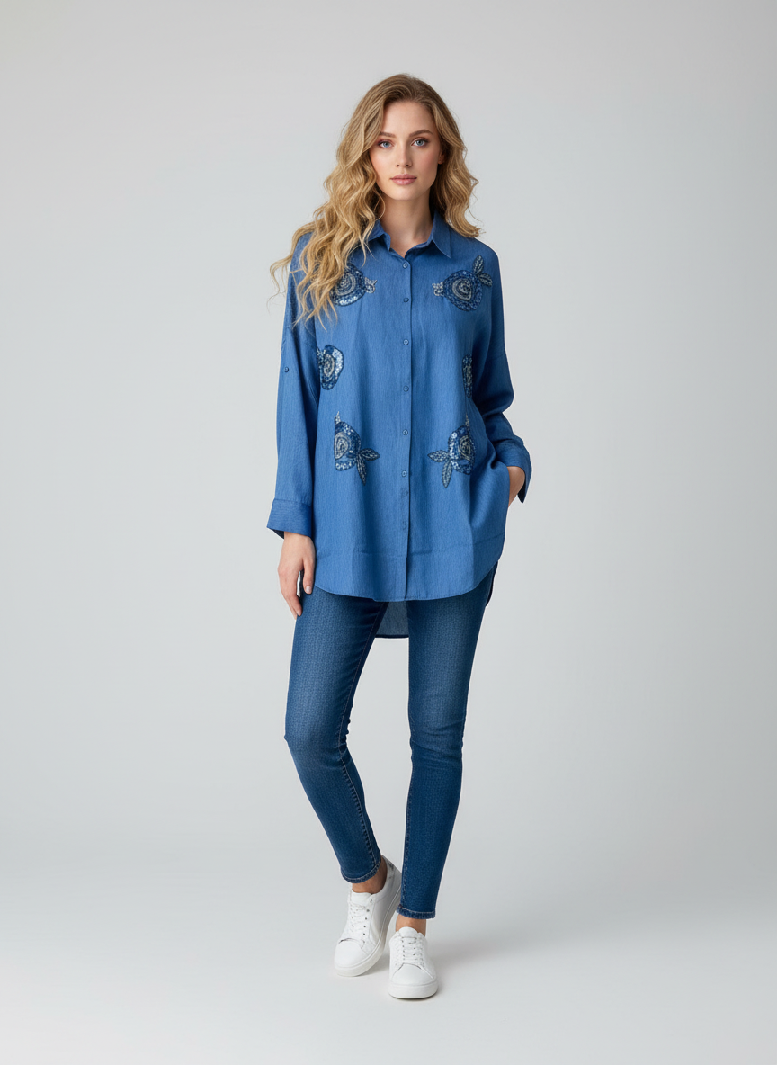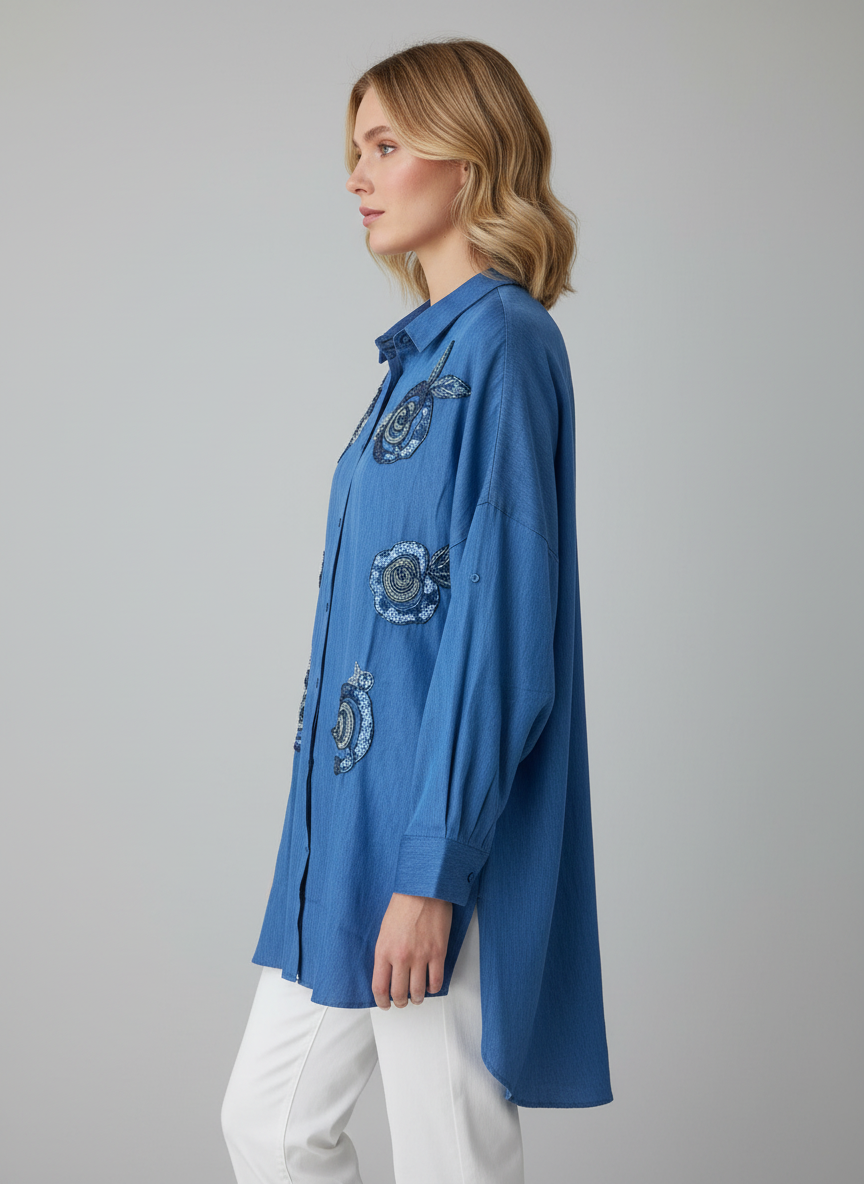 Πουκάμισο μπλε με ύφανση σαν μετάξι