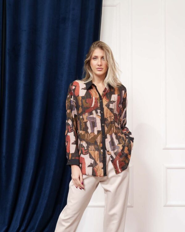 Ayla Καφέ Εμπριμε Μουσελίνα Πουκάμισο