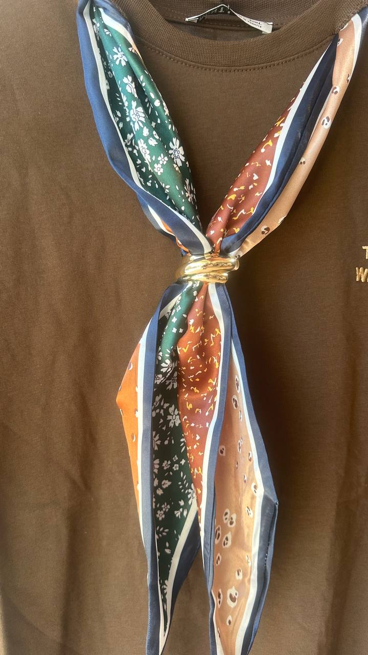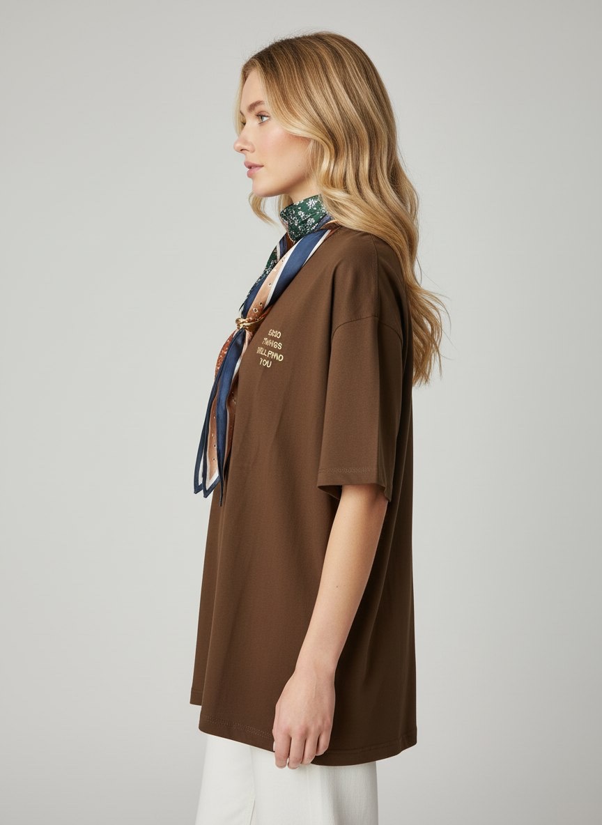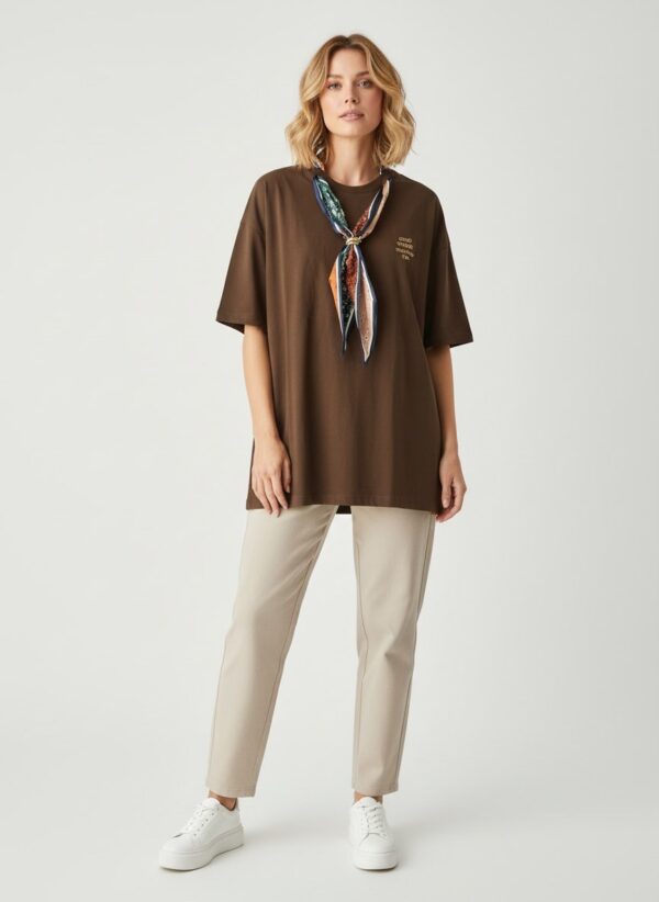 Μοντέρνο και άνετο t-shirt σε μαύρο χρώμα, ιδανικό για καθημερινές εμφανίσεις με στυλ. Διαθέτει minimal τύπωμα μπροστά με τη φράση “Good things will find you”, που δίνει μια θετική και fashionable πινελιά. Συνοδεύεται από εντυπωσιακό μαντήλι σε μοναδικούς χρωματικούς συνδυασμούς, που μπορεί να φορεθεί με πολλούς τρόπους και απογειώνει το outfit. Άνετη γραμμή που κολακεύει όλους τους σωματότυπους.