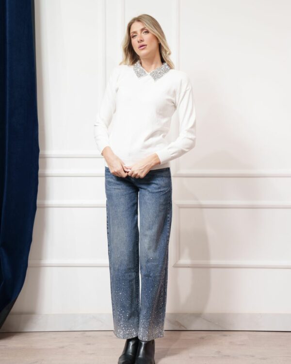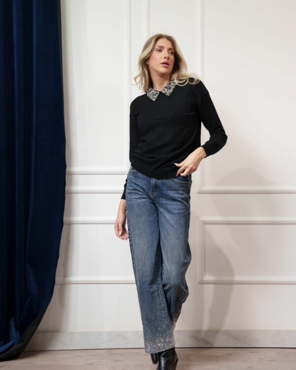 - Ο γιακάς της είναι πλούσα στολισμένος με στρας