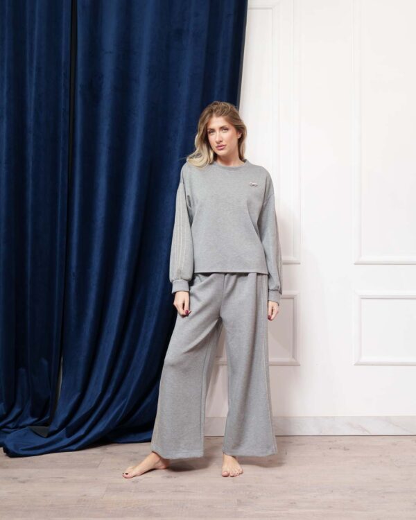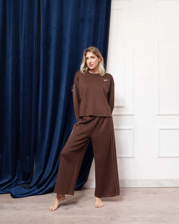 - Έχει χρυσές λεπτομέρειες κάθετα στο μανίκι και στο παντελόνι