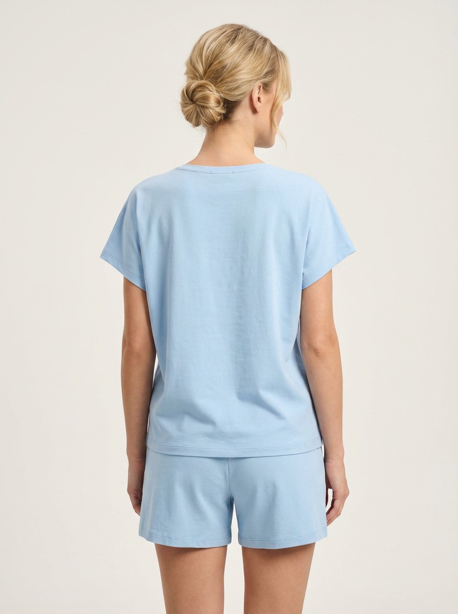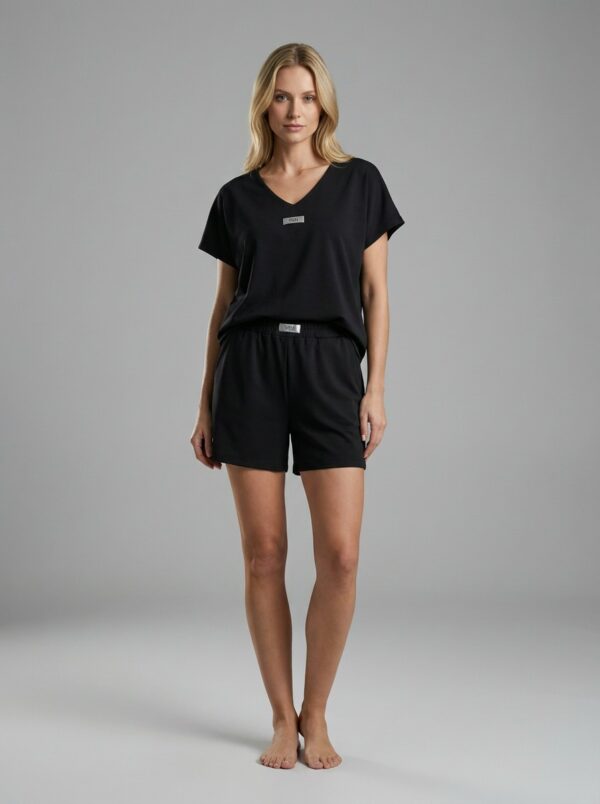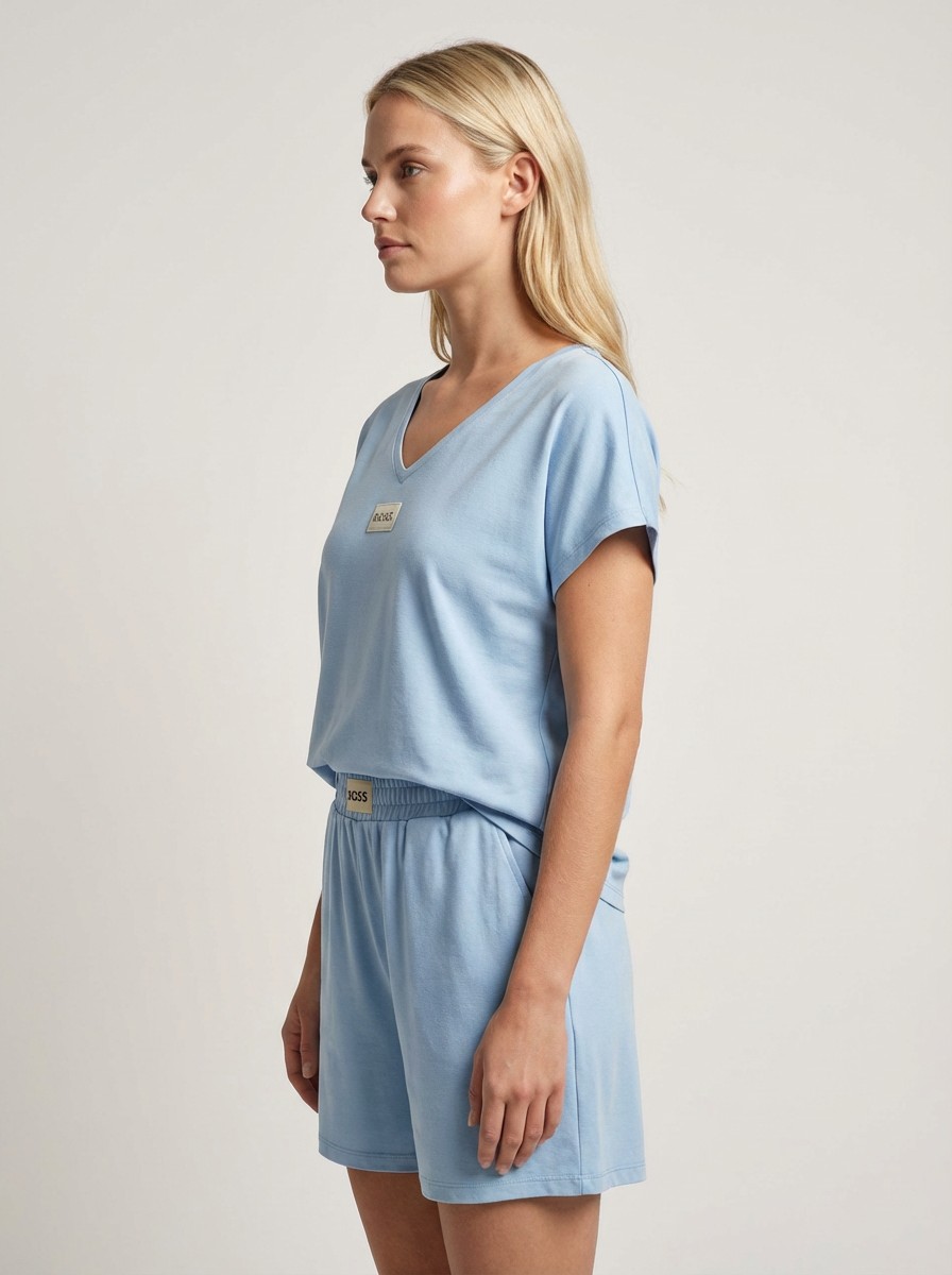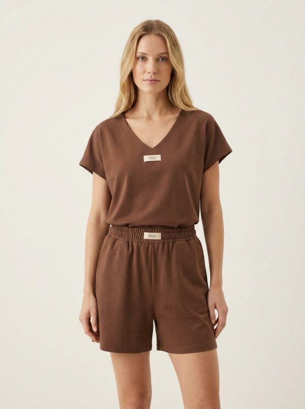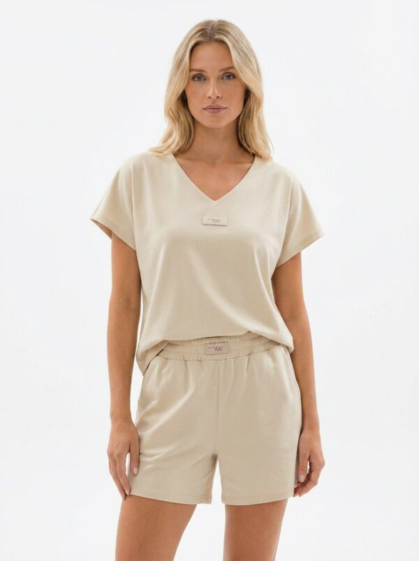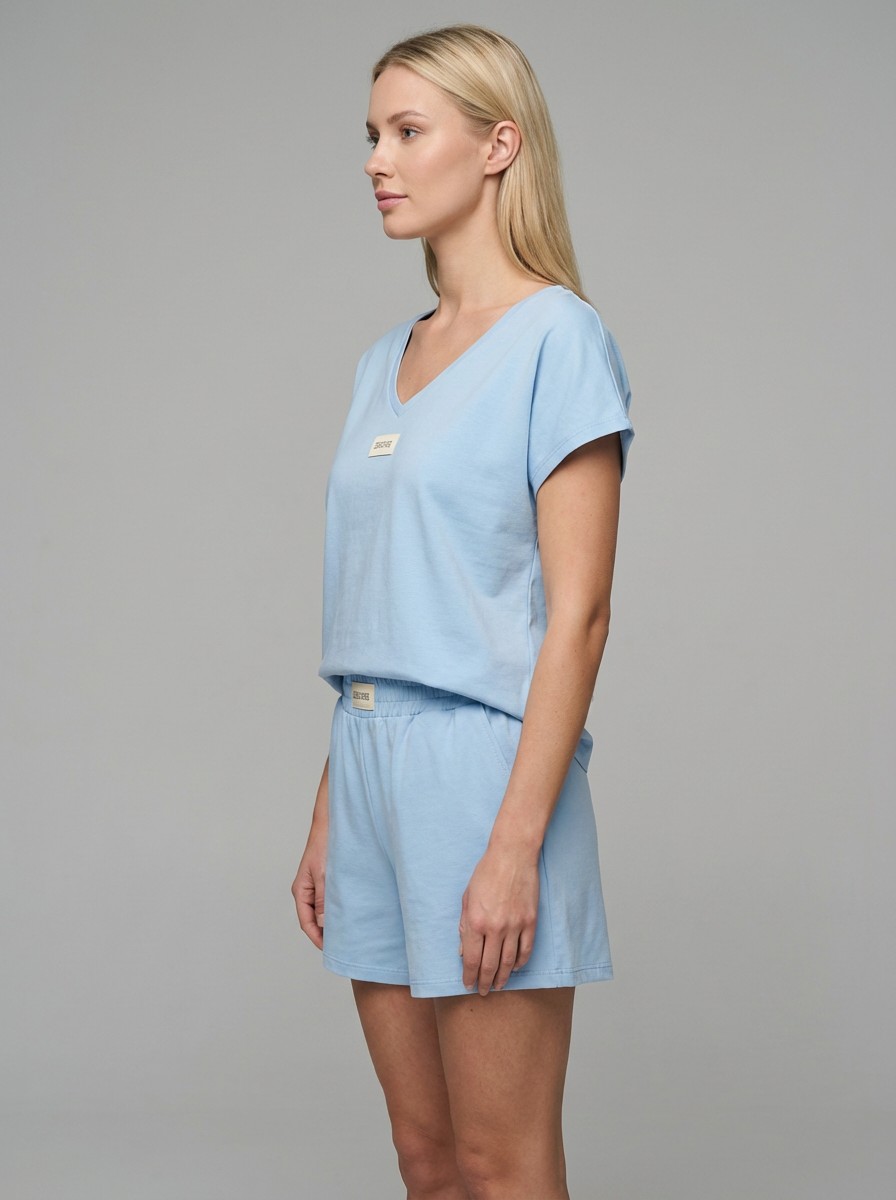 Ανάλαφρο και κομψό σετ σε υπέροχη baby blue απόχρωση, ιδανικό για τις καθημερινές αλλά και πιο chic εμφανίσεις σου. Το T-shirt διαθέτει χαλαρή γραμμή με V λαιμόκοψη, προσφέροντας άνεση και στυλ, ενώ η βερμούδα με λάστιχο στη μέση αγκαλιάζει όμορφα το σώμα και χαρίζει ελευθερία κινήσεων.