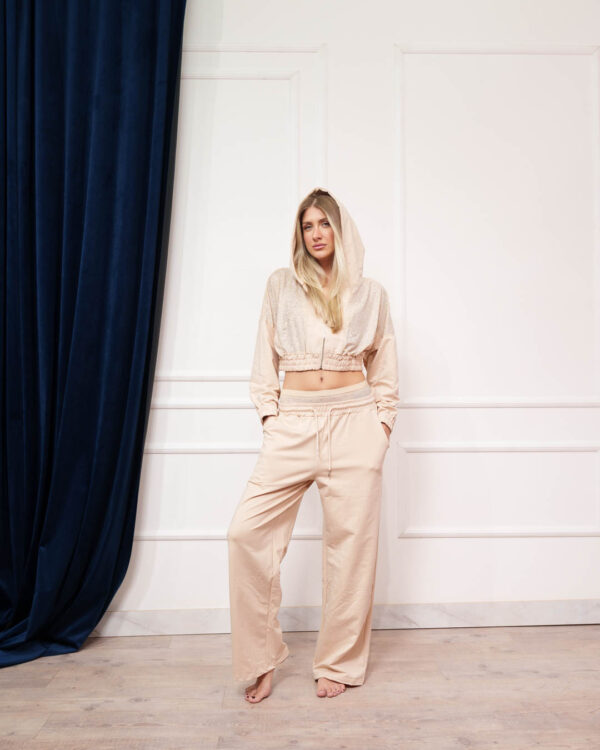 - Το παντελόνι έχει λάστιχο στη μέση και στρας περιμετρικά